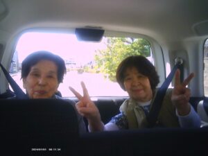 ใ€Œใ‚คใ‚งใƒผใ‚คใ€ใ€€ใ€€่Šฑ่ฆ‹ใฎ่ปŠๅ†…ใงใ‚‚ใ€ๆกœใ‚’ใจใฆใ‚‚ๆฅฝใ—ใฟใซใ—ใฆใ„ใ‚‹ๆง˜ๅญใงใ—ใŸใ€‚